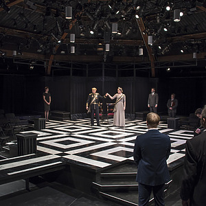 I seem to be saying this a lot lately, but it is more true here than the others: Young and Old, Royal and Common, Modern and Historical, Epic and Intimate, Formal and Informal. One man’s struggle with vengeance, loss, and love. The first of four Hamlets I have done that had no physical ghost – aural only. Imagine the ghost’s voice, performed by the incomparable Michael Elich, bouncing around the room behind the heads of the audience, who were almost entirely in the round.