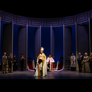 Joe Payne’s sound track is wonderfully and mysteriously ambient at times, with episodes of musical suggestion and proclamation, not the least of which is the obligatory Handel coronation anthem thrown in for appropriate measure.  All in all, this CBT production of King Charles III is remarkably surprising, not just in its creative physical production, but in its atmospheric ability to communicate the most basic of universal truths: the consequences of seeking power and identity in a changing world. For some reason, the future never seems to learn.  – Alan Sherrod, ArtsKNoxville article link