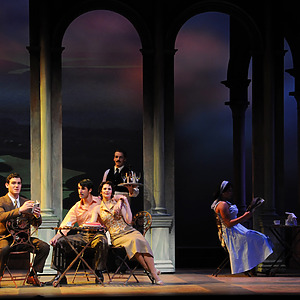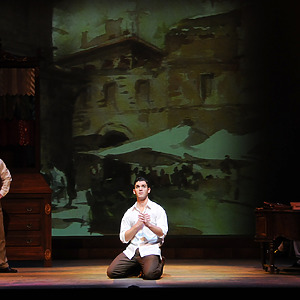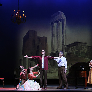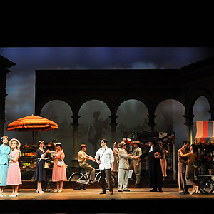 Understandably, this is a touching and delightful piece. We treated it very delicately, and naturally. The Orchestra and cast were phenomenal. A true pleasure. The projections consisted of rear projections, as our ever modulating drops. The scenic designer based the concept for them on watercolor paintings of Florence, from the early to mid twentieth century. Some of the final product were actual paintings, but some were photographs which were “watercolorized” by me.