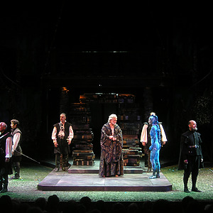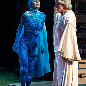 One of the highlights of my trip this year was seeing, hearing, and feeling USF’s Ariel, and her haunting presence on the Adams Memorial Theatre stage…Never overdoing it, Woronicz clearly showed that Prospero was a powerful man. The effect of his magic was always synchronized with the other actors, the lighting, and the sound; it was impressive…It was a hot night in Cedar City, but I could forget that, as the music and sounds in the Adams surrounded the audience: echoing, blowing, and moving. Composer and sound designer Joe Payne created a beautiful audio environment, writing melodies to fit Shakespeare’s text. – Amber Peck, Utah Theatre Bloggers Association