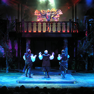 Jones [Director] also incorporated some beautiful music [composed by Joe Payne] throughout the show with an especially haunting melody sung by Ariel (Melinda Parrett), a dainty spirit and Prospero\’s helper. The music adds an ethereal level, making the mystical setting that much more believable. – Erica Hansen, Deseret News